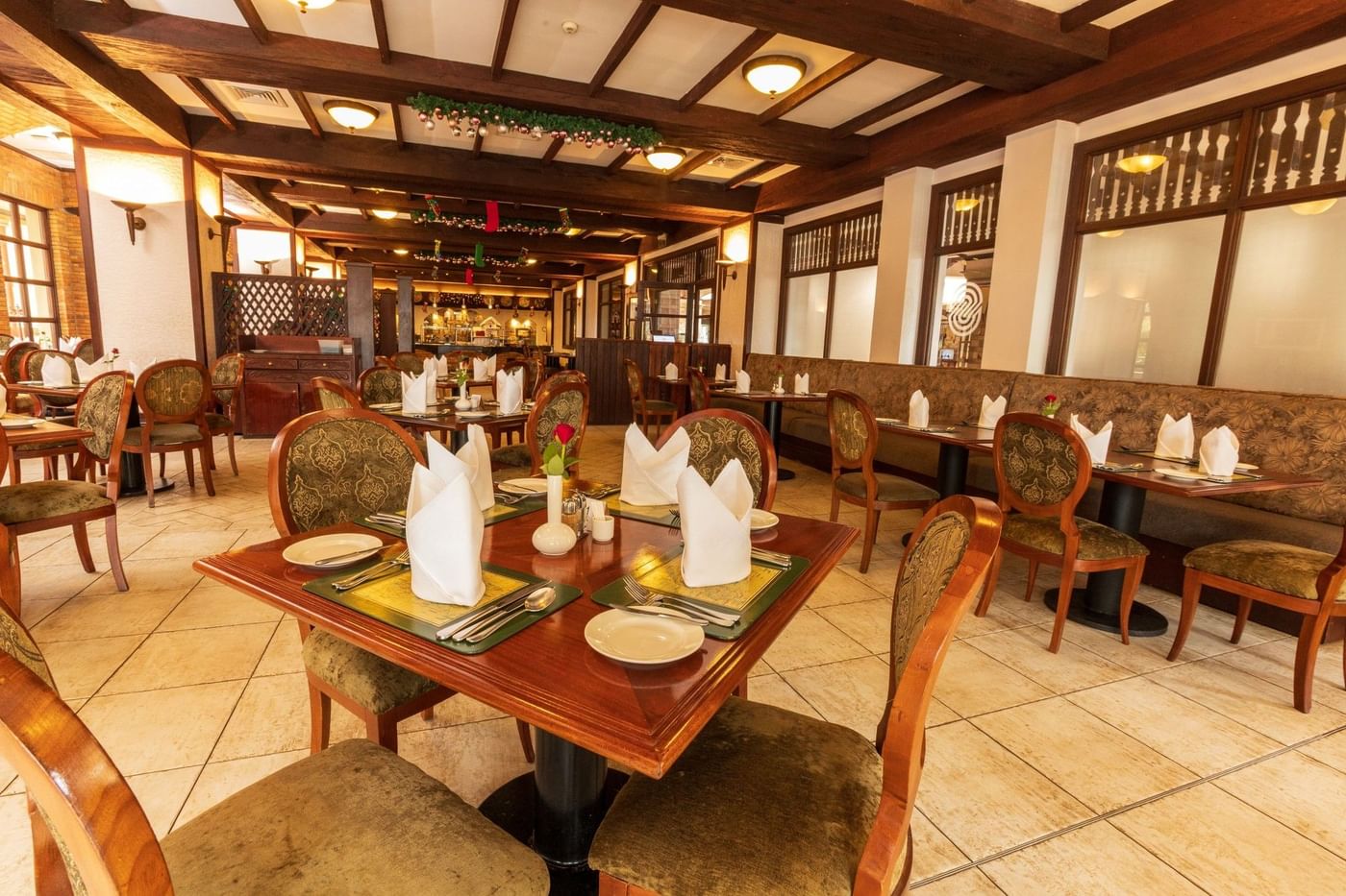 Dining ranges from the Marina to more elevated restaurant settings and bar rituals, all supported by the broad open atmosphere of the lakeside estate.
